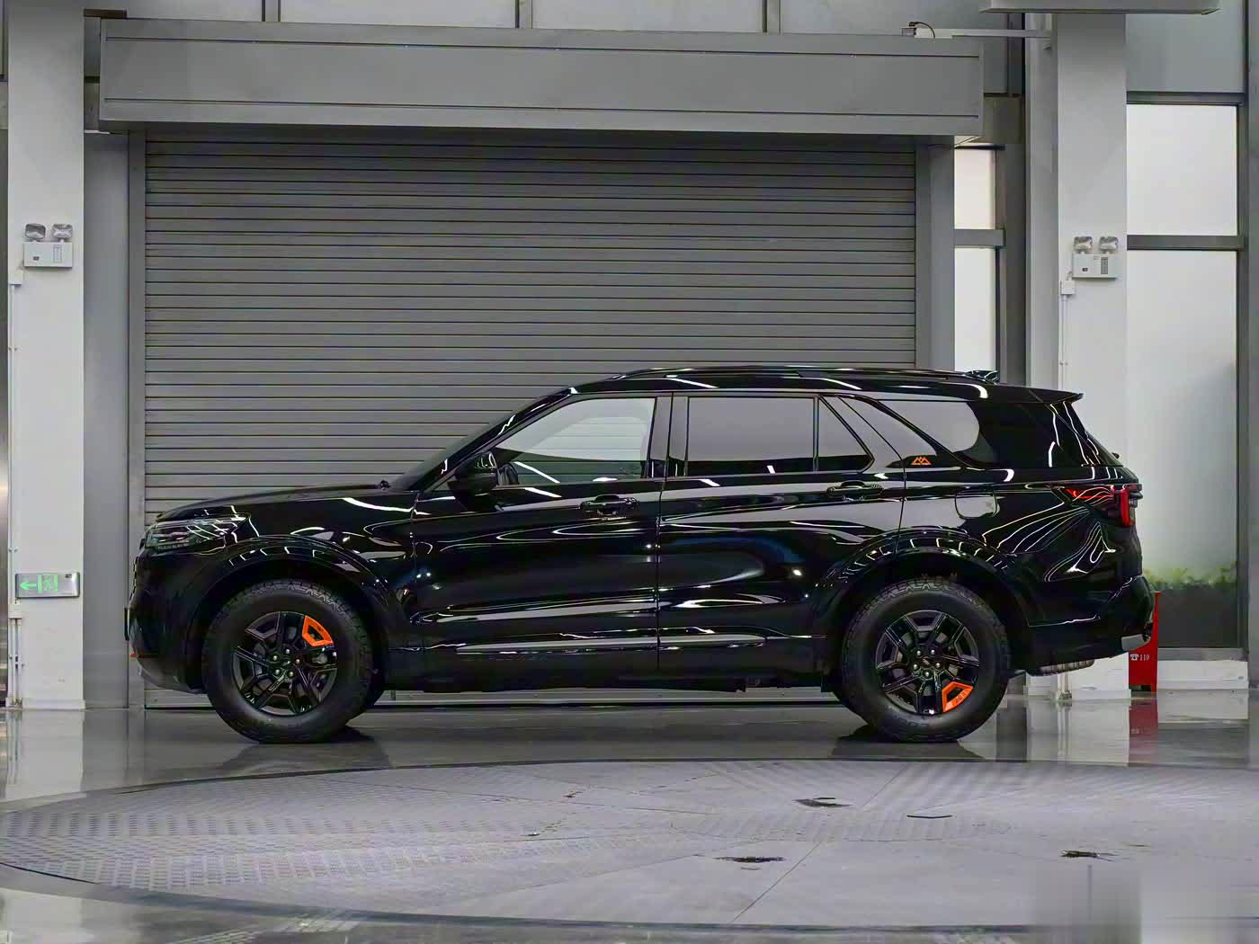 再来看车身侧面部分,车身侧面是昆仑穿越版的标志性所在,“山系陆上游艇” 设计理念贯穿始终。18 英寸全地形 AT 胎为全系标配,深宽胎纹确保泥泞、碎石路面的抓地力,轮毂侧面的橙色装饰与车头拖钩形成呼应,细节处彰显设计巧思。宽体轮眉采用黑色哑光材质,不仅强化肌肉感,更能在越野时有效防刮擦,配合 223mm 的离地间隙、23° 接近角与 24° 离去角,赋予车辆强悍的通过性。车身尺寸方面,长超 5 米、轴距超 3 米的体量,既保证了内部空间,又通过简洁流畅的腰线设计避免了臃肿感,车顶行李架则为加装行李箱、自行车架提供了可能,进一步拓展实用场景。